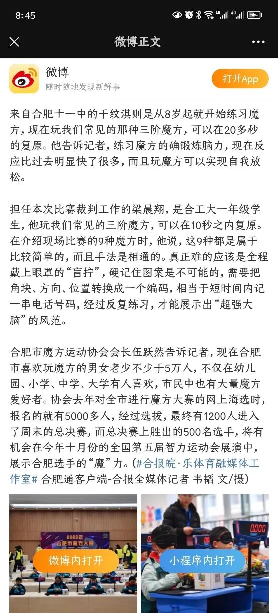 为深入贯彻落实《关于深化体教融合促进青少年健康发展的意见》,落实五育并举全面发展的育人要求,培养青少年的科学素质和实践能力,推动青少年科创活动的蓬勃发展,合肥市首届魔方比赛闪亮登场。